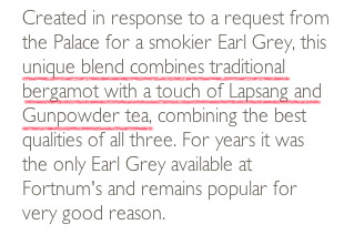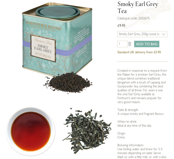「それなら、迷わず『フォートナム&メイソン』の「Lapsang Souchon」がいいよ。」って返事をしたかったんだけど、ネットで並行輸入物を見たら、125gで3,500円(税込)もしてるので、